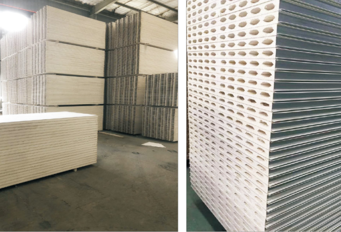 玻镁净化板是将玻镁网格芯材两面胶粘接彩色涂层钢板复合加压制成,夹芯层为中空玻镁板,为达到更要的防火保温效果,中空玻镁净化板内可填充岩棉、纸蜂窝、铝蜂窝等材质.具有独特的防尘、防火、防静电、抗菌等效果,广泛用于建筑、保温、包装、冷冻、日用品,工业铸造等领域.为适应国家建筑节能要求主要应用于墙体保温、外墙内保温.